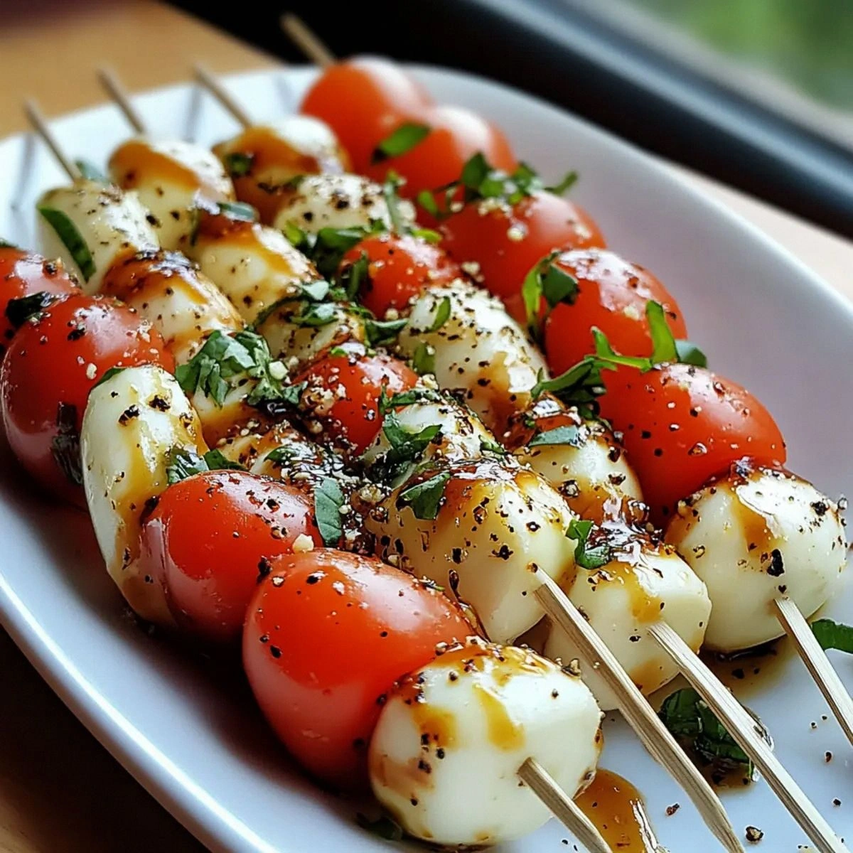 - Step 8: Serve Immediately. Arrange the skewers on a platter, optionally garnishing with a few extra basil leaves or a dusting of cracked pepper. Serve alongside a crisp white wine or sparkling water to complement the bright flavors. This final presentation turns a simple appetizer into a party‑ready masterpiece.