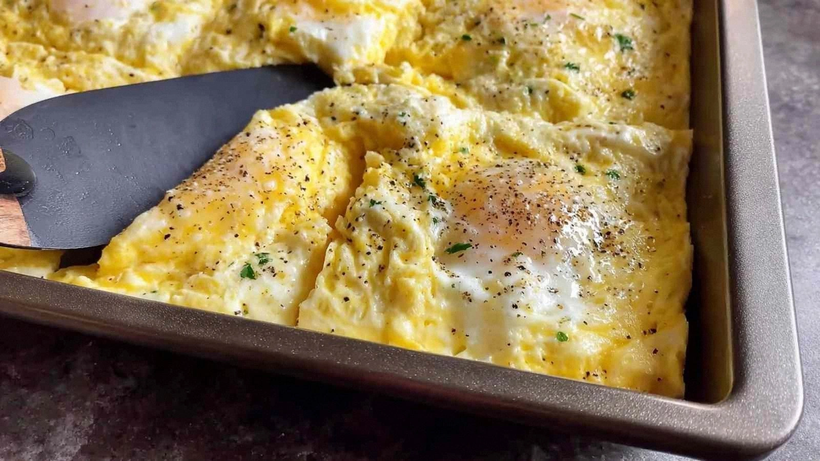 The unexpected star of this recipe is the sheet pan itself. By spreading the eggs across a flat surface, you allow the heat to distribute evenly, creating a uniform golden crust. This technique eliminates the need for constant stirring and reduces the risk of overcooking. The pan also doubles as a serving dish, saving you a plate and a fork. If you’re feeling adventurous, try a cast‑iron skillet for an even richer flavor.